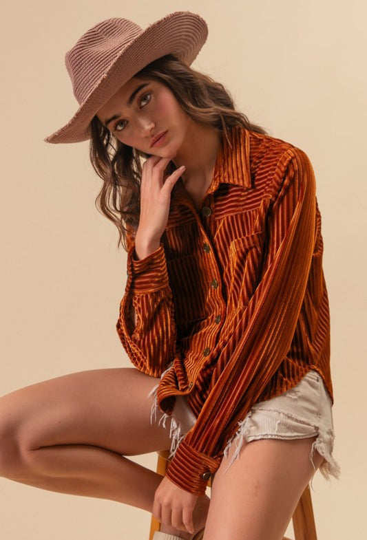 Ribbed Velvet Rust Blouse