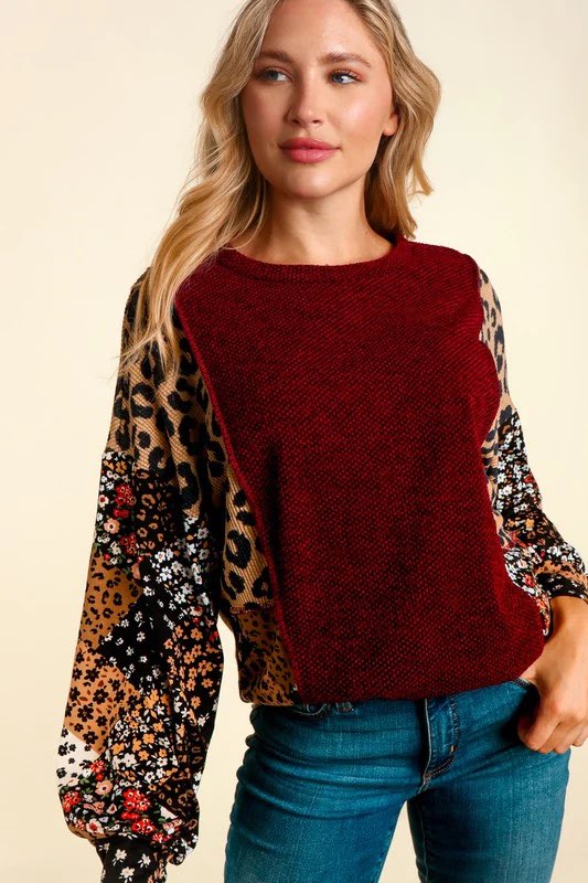 Cranberry Leopard/Floral Top