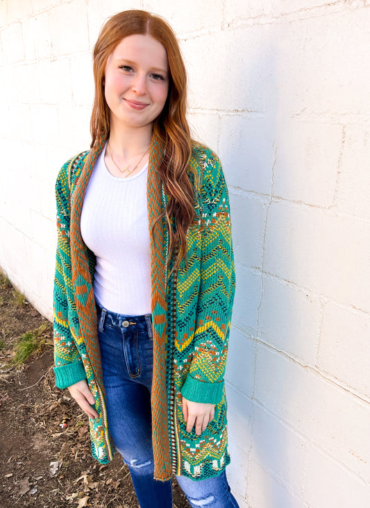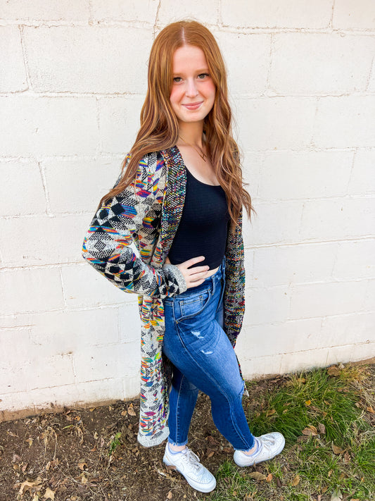 Aztec Print Colorful Cardigan/Duster
